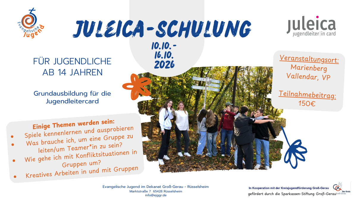 Als Evangelische Jugend Groß-Gerau - Rüsselsheim sind wir für die Arbeit mit, von und für Jugendliche in unserem Dekanat verantwortlich und sind somit Ansprechpartner für alle Fragen zur Arbeit mit, von und für Kinder und Jugendliche.